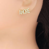Clear CZ Amore Word Gold Silver Stud Earrings, Sku#A354
