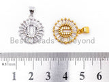 CZ Micro Pave Initial Letter U/ Letter V/Letter W Charm/Pendent,Cubic Zirconia Pave Alphabet Pendent, Gold/Silver Finish,16x18mm, sku#Z238