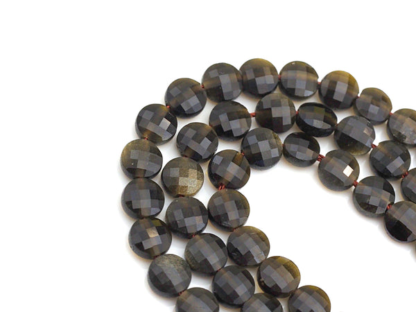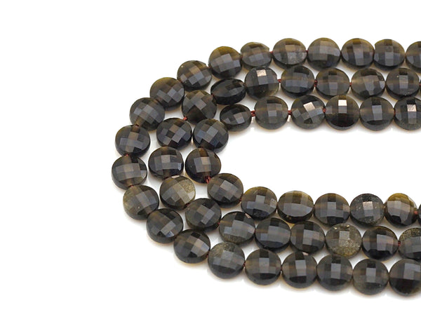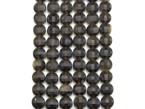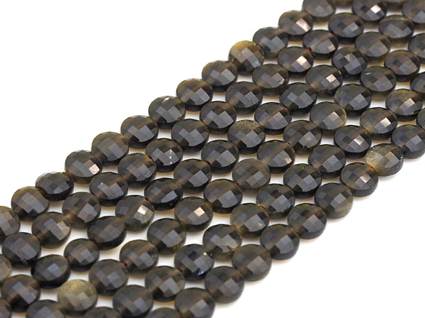 Double Sided Turtle Shell Cut Natural Golden Obsidian Button Shape beads, 6mm faceted, Natural Gemstone Beads, 16" Full strand, sku#U607