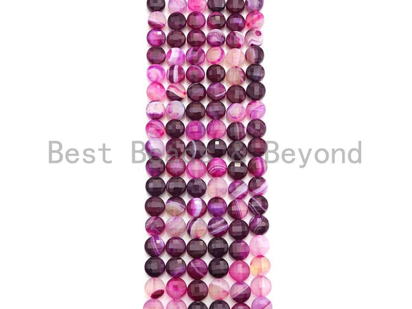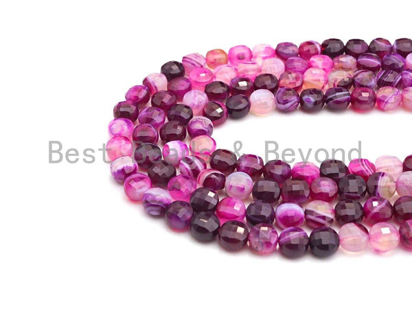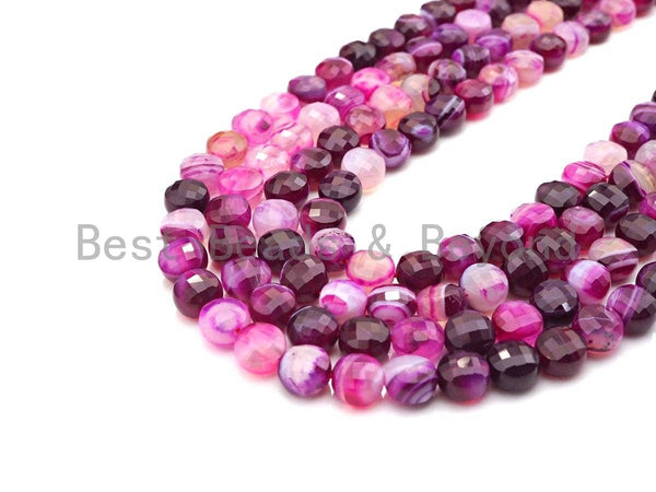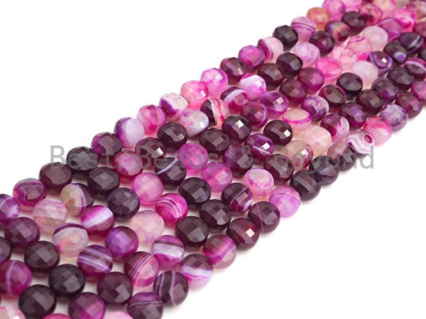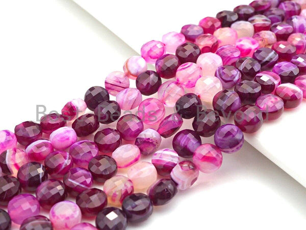 Double Sided Turtle Shell Cut Natural Purple Pink Agate Coin Shape beads, 6mm/8mm/10mm Checkerboard Cut Agate, 15.5" Full strand, Sku#UA84