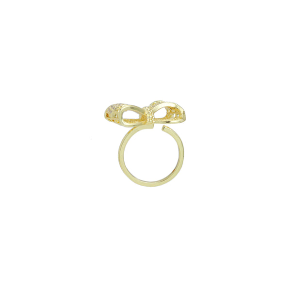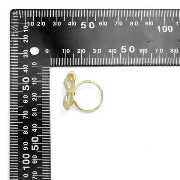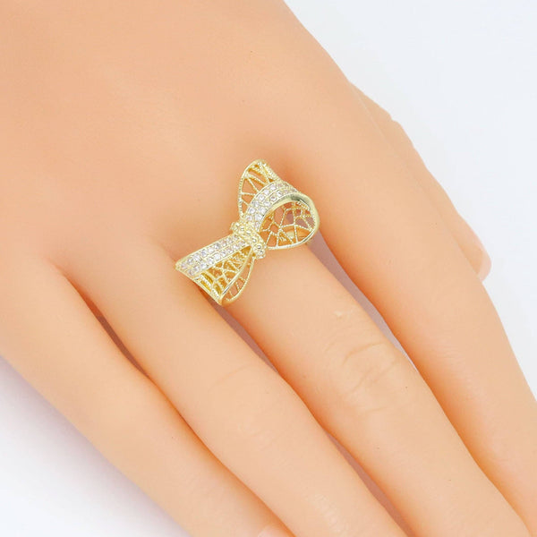 Gold Clear CZ Filigree Bowknot Statement Adjustable Ring, Sku#LX529
