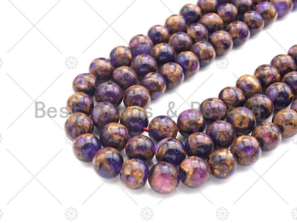 Gold Clinquant Beads, 4mm/6mm/ 8mm/10mm/12mm, Cloisonne Purple Color, 15.5" Full Strand Wholesale Gemstones,sku#U953