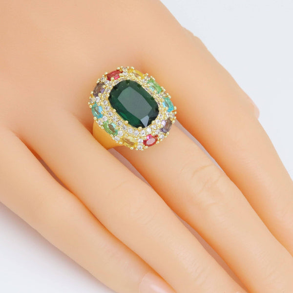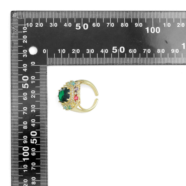 Gold Colorful CZ Oval Emerald Statement Adjustable Ring, Sku#LX545