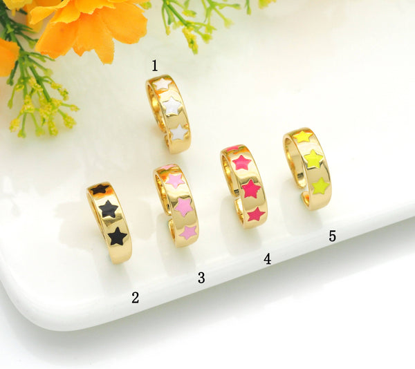 Gold Colorful Enamel Star Adjustable Ring, Sku#LX183