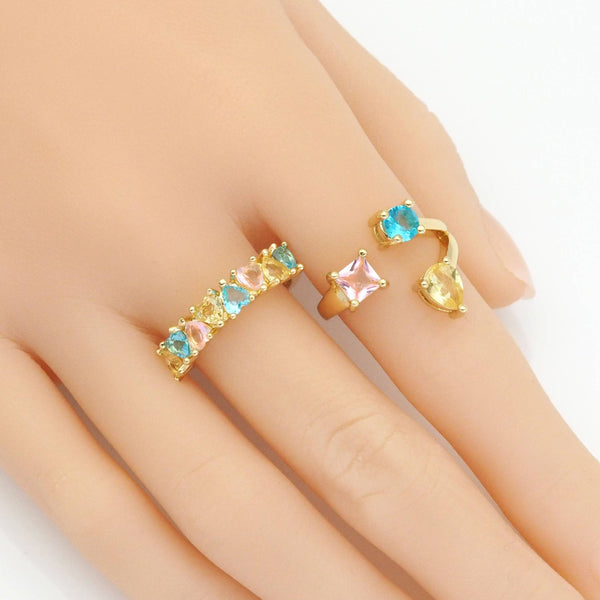 Gold Colorful Stone Adjustable Ring, Sku#LX267