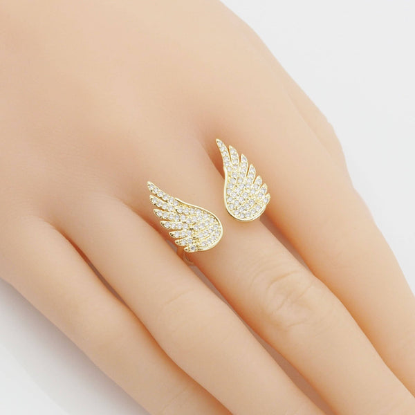 Gold CZ Angel Wing Adjustable Ring, Sku#LX225