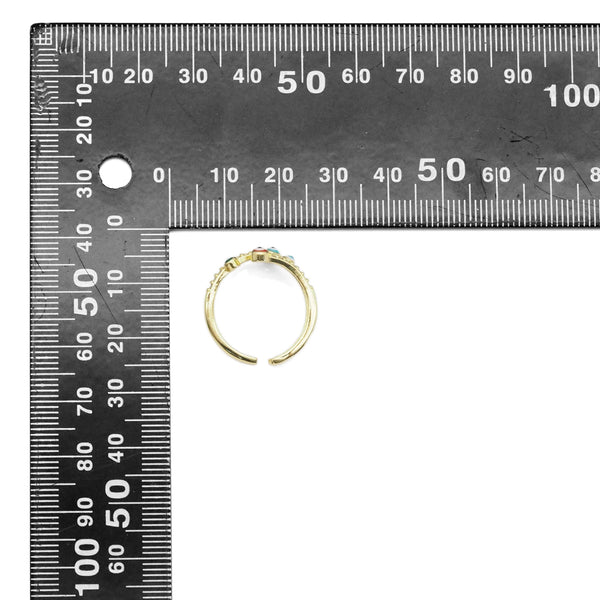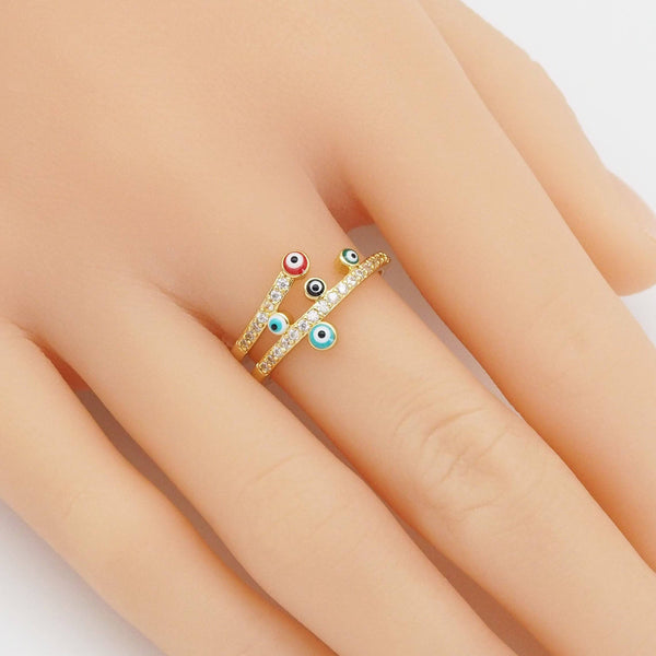 Gold CZ Enamel Evil Eye Adjustable Ring, Sku#Y861