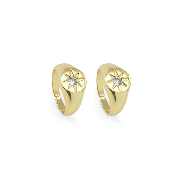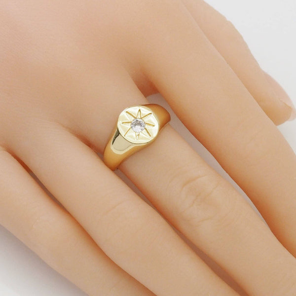 Gold CZ North Star Signet Adjustable Ring, Sku#LX326
