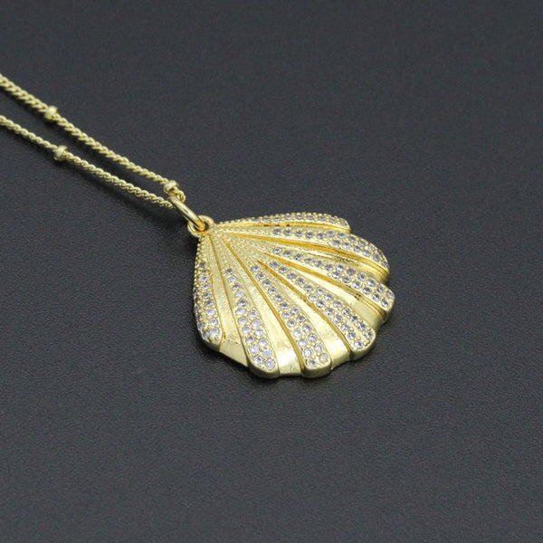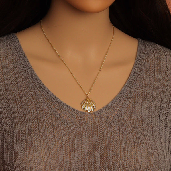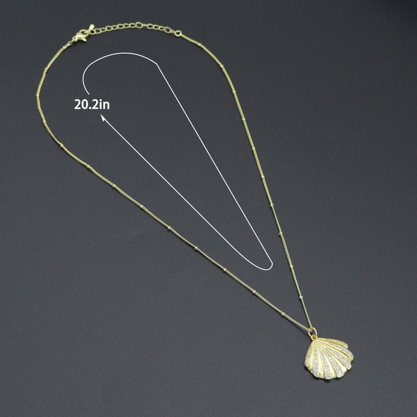 Gold Link Chain Clear CZ Shell Pendant Adjustable Necklace, sku#EF717