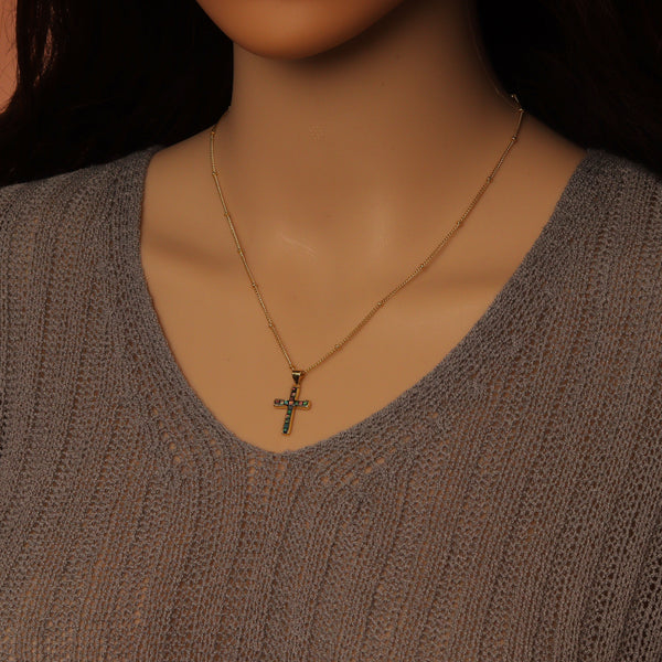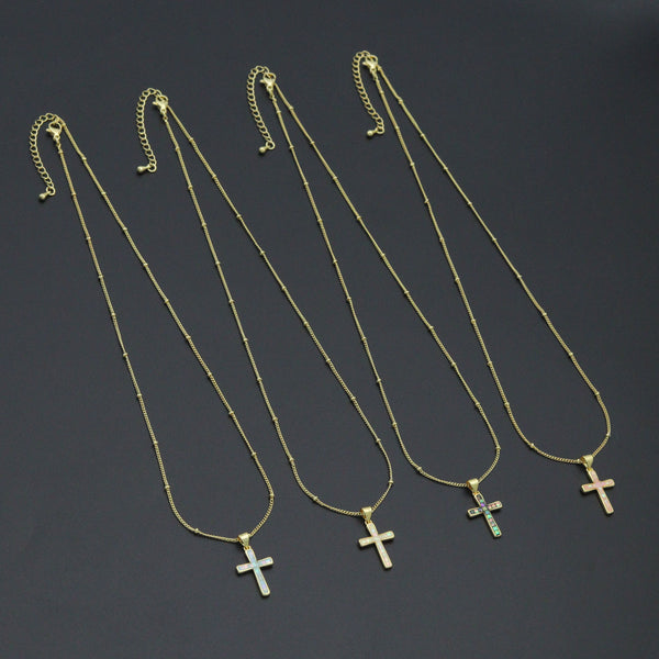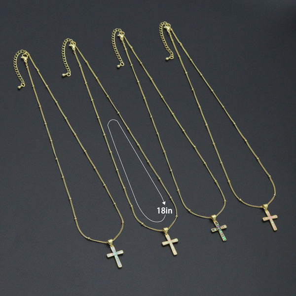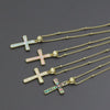 Gold Link Chain Enamel Cross Pendant Adjustable Necklace, sku#EF718