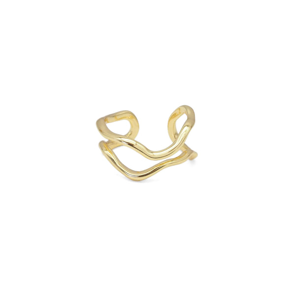 Gold Minimal Wave Line Adjustable Ring, Sku#ZX148