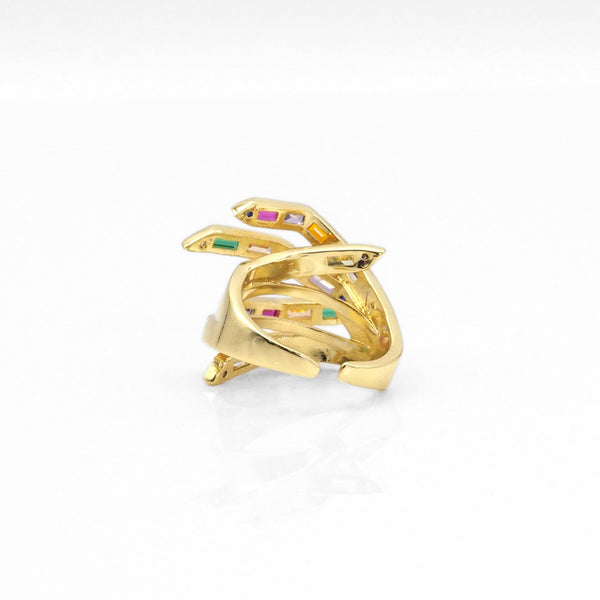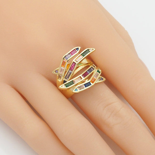 Gold Multicolor Baguette CZ Adjustable Ring, Sku#LX245