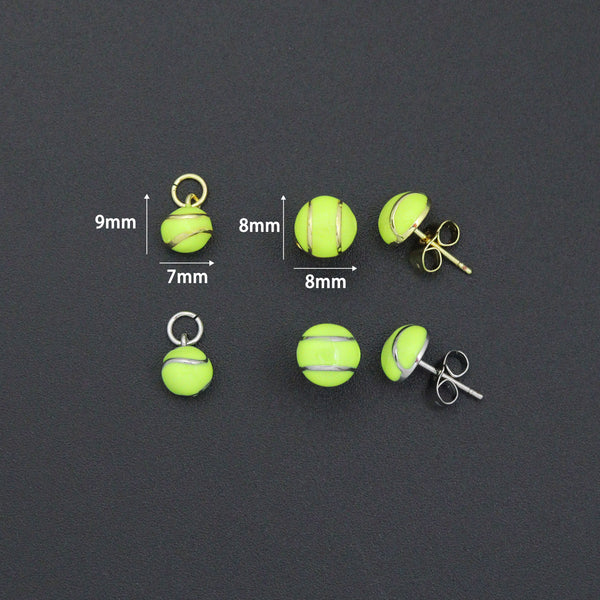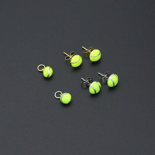 These playful tennis ball earrings and charms feature mini neon-yellow tennis balls designed with realistic detailing and a glossy finish. Available as stud earrings with either gold-tone or silver-tone posts, as well as matching charm pendants, they bring a sporty, vibrant touch to any outfit. Lightweight and eye-catching, they’re perfect for tennis enthusiasts, athletes, or anyone who loves fun, statement accessories.