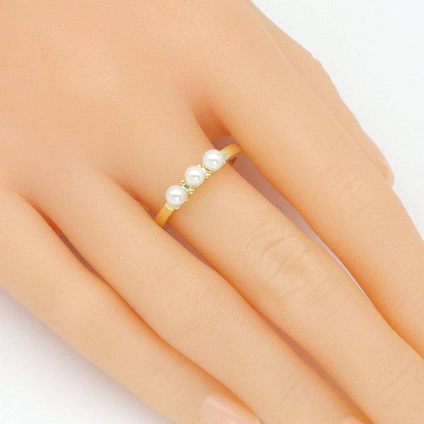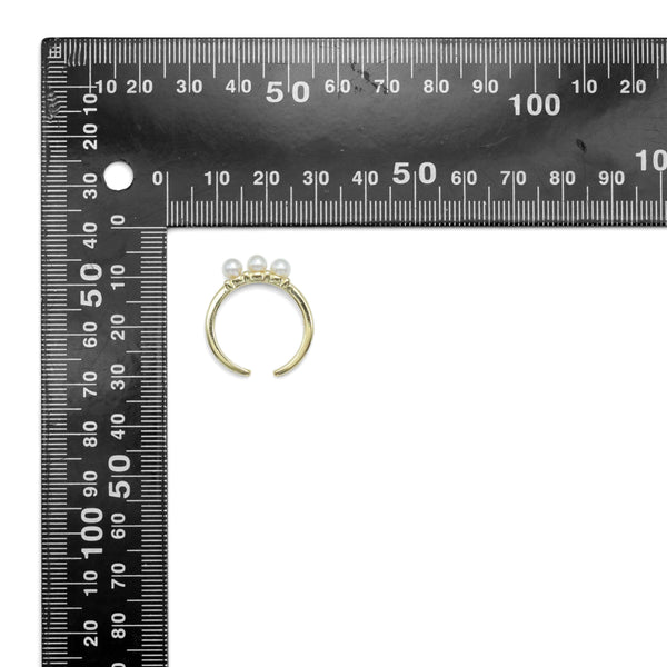 Gold Silver Three Pearl Thin Adjustable Ring, Sku#LX757